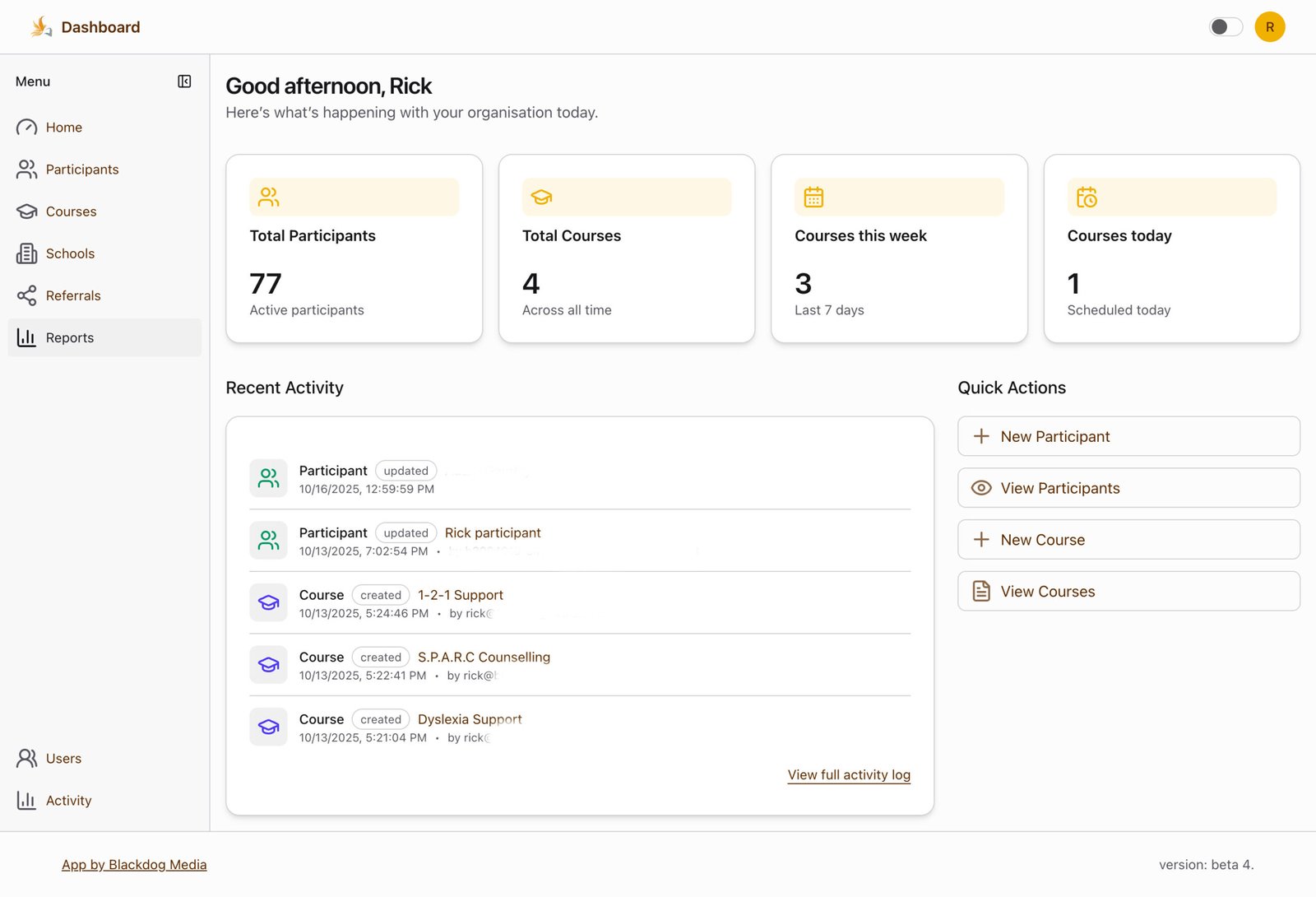 A local charity approached us to build a database to record of their participants. We built an attendance recording system, participant records, charts, graphs and reports, exportable spreadsheets.